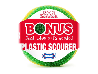 A Bonus műanyagsúroló 3 db-os kiszerelésben kapható, és karcmentesen tisztít. Szárazon és nedvesen is használható, és azonnali erős súroló hatást biztosít.