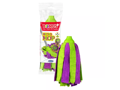 80% poliészter és 20% poliamid szálakból álló mikroszálas felmosófej. Minden típusú padló csík- és szöszmentes tisztításához. Rendkívül jó nedvszívó és kiváló tisztítóerővel rendelkezik a mikroszálaknak köszönhetően. Mosógépben mosható.
