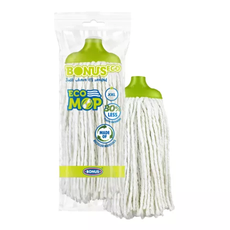 Egy ilyen klasszikus, sokoldalú terméket a környezetbarát megoldások tesznek még szerethetőbbé. Annak érdekében, hogy védjük a Földet, a BONUS EcoMOP-ot újrahasznosított pamutból készítettük. Mit jelent ez pontosan? A felmosófejben kidobott és fel nem használt szövet és ruházati termékek kelnek új életre.