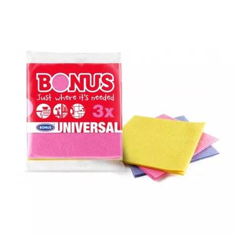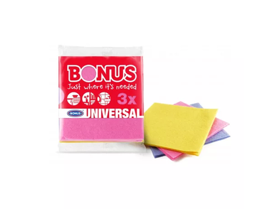 A BONUS Általános Törlőkendő 3 db-os kiszerelésben kiváló választás mindennapi takarításhoz. Erős, nedvszívó és sokoldalúan használható – konyhában, fürdőszobában vagy akár az autóban is.