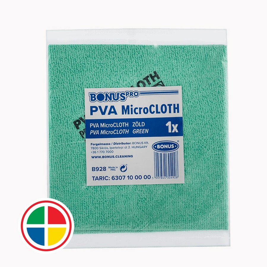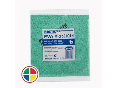 A Bonus HACCP PVA mikroszálas kendő két nem mindennapi anyag, a mikroszál és a PVA (polivinil-alkohol) kombinációja, amely egy vízoldható polimer. Különleges tulajdonsága, hogy megszáradva keménnyé válik, így elpusztulnak benne a kórokozók, ebből kifolyólag csak nedvesen érdemes használni. Összetételéből adódóan nagyon magas tisztítási teljesítménnyel rendelkezik, így jelentősen megkönnyíti a takarítást. Szinte minden sima felület tisztítására alkalmas, mint például üveg, tükör, rozsdamentes acél, műanyag és kerámia.
