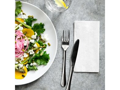 A Tork Lunch szalvéták elsősorban könnyű ételekhez illenek. Többféle színben kaphatók, hogy illeszkedni tudjanak bármelyik étterem színvilágához.
