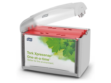 A Tork Xpressnap® asztali szalvétaadagoló kitűnő választás az olyan gyorséttermekben, ahol a szalvétákat az asztalokra helyezik. A kompakt kialakítású, modern adagolóból egyszerre egy szalvétát lehet kiemelni, így javul a higiénia, és legalább 25%-kal csökken a szalvétafogyasztás a hagyományos adagolórendszerekhez képest. Többféle modern színben áll rendelkezésre, így Ön is könnyen megtalálhatja a saját éttermébe illőt.
