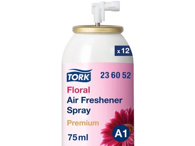 Kezelje eredményesen és hatékonyan a kellemetlen mosdóhelyi szagokat a Tork virágos illatosító spray-vel. A spray koncentrált illóolajat és saját fejlesztésű szagsemlegesítő anyagokat tartalmaz, így megszünteti a kellemetlen szagokat, és hosszan tartó, friss illatot biztosít. A spray a Tork illatosító spray adagolóval együtt használható.