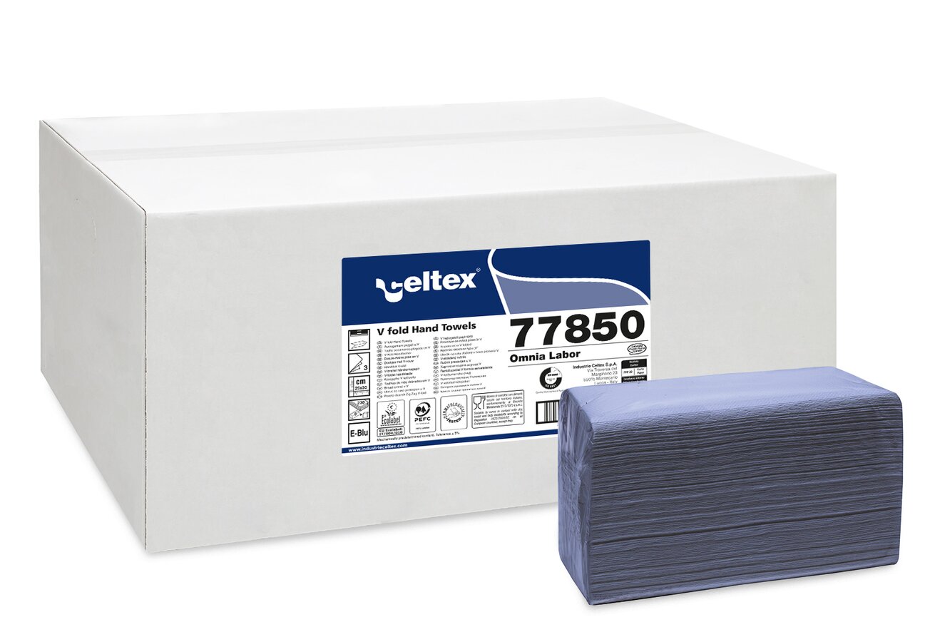 Celtex Omnia Labor hajtogatott kéztörlő kék, 3 réteg, 25x30cm, 8x230/karton - 77850
