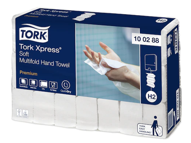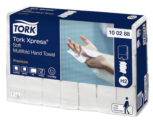 Gondoskodjon a kifogástalan kéztörlésről, és kényeztesse vendégeit a nagyméretű és kiváló minőségű Tork Xpress® Soft Multifold kéztörlőkkel, amelyek kímélik a kezet. A kéztörlőket a Tork Xpress® Multifold kéztörlő adagolókba, közepes látogatottságú mosdókba ajánljuk. Kis helyen is elférnek, és egyszerre kényelmesek és higiénikusak.
