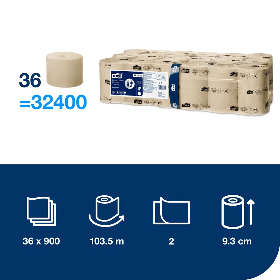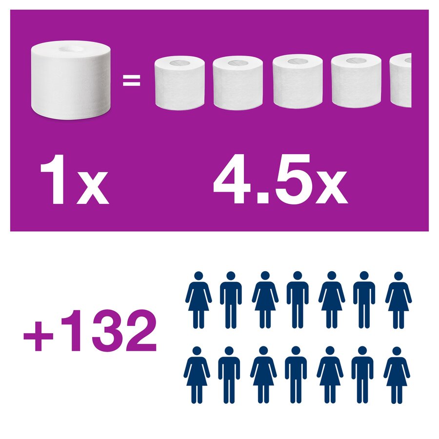 A Tork duplatekercses, belsőmag nélküli Mid-size toalettpapír adagoló rendszer kiváló választás az olyan alacsony és közepes forgalmú mosdókba, ahol fontos a vendégek elégedettsége. Rendkívül hatékony, és állandó toalettpapír-utánpótlást biztosít, hiszen két tekercset tartalmaz. Az Advanced minőségű Tork belsőmag nélküli Mid-size toalettpapír tökéletes egyensúlyt teremt az ár és a minőség között. A toalettpapír 100%-ban újrahasznosított rostszálakból készült.