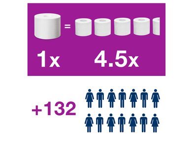 - Kompakt közepes méretű tekercsek: Mindegyik 4-5 kis tekercses toalettpapírnak felel meg