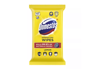 A Domestos Lemon Fresh fertőtlenítő törlőkendő elpusztítja a baktériumok és vírusok* 99,9%-át. Használata egyszerű, praktikus. Visszazárható csomagolásának köszönhetően bárhova könnyen magunkkal vihetjük, nyilvános helyeken is jó szolgálatot tehet, például kilincs, ...