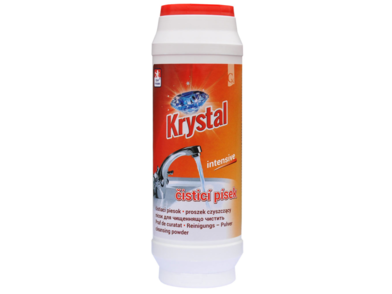 A Krystal súrolópor finom szemcsés tiszítópor, konyhai mosogatók, edények, fürdőszobai kádak, mosdókagylók és csempék tisztítására szolgál.Hatékonyan távolítja el a szennyeződéseket anélkül, hogy karcolná a felületet. Nem hagy foltokat és kellemes citrusos illatot biztosít.