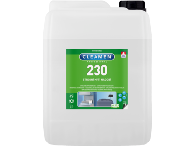 A Cleamen 230 egy magasan koncentrált, folyékony mosogatószer professzionális gépi mosogatáshoz, automatikus adagolással. Gazdaságos mégis erős szennyeződés-eltávolító hatással rendelkezik.