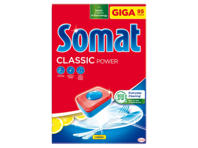 Somat Classic Power Lemon mosogatógép tabletta kiváló választás minden háztartás számára, ahol a tiszta és csillogó edények elérése a cél. A tabletták hatékony formulája könnyedén eltávolítja a makacs szennyeződéseket és a zsírt, akár alacsony hőmérsékleten is, ...
