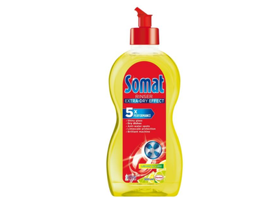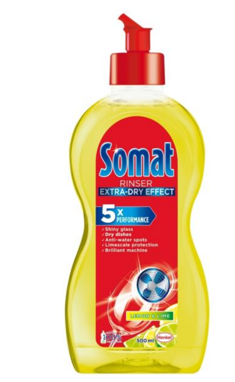 A Somat száradást gyorsító mosogatógép öblítő ragyogó tisztaságot biztosít a poharak és edények számára, megelőzi a vízcsepp foltok kialakulását, valamint elősegíti a száradást különösen a műanyag felületeken. A speciális formulájának köszönhetően edényeinek tökéletes szárazságot kölcsönöz és friss illatot biztosít mosogatógépe számára a mosogatási program befejeztével.
