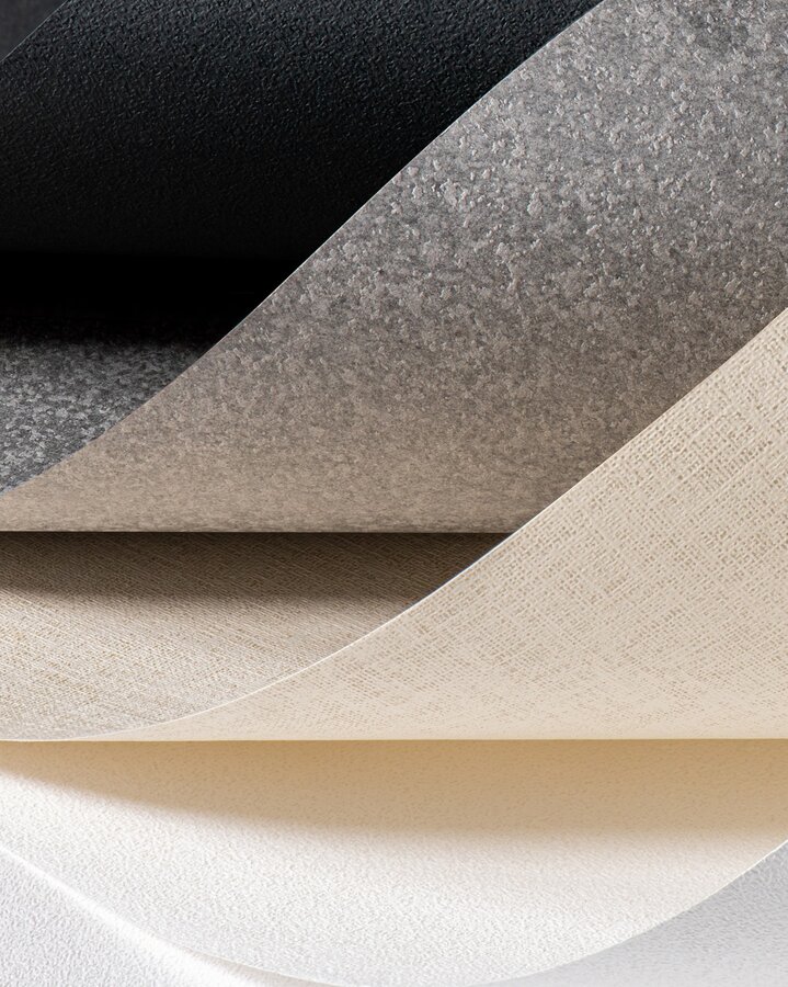 egyoldalon prégelt magas minőségű kreatív csomagoló, kasírozó anyag, kétféle (MILLENIUM, TELATO) prégeléssel